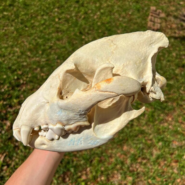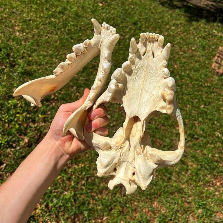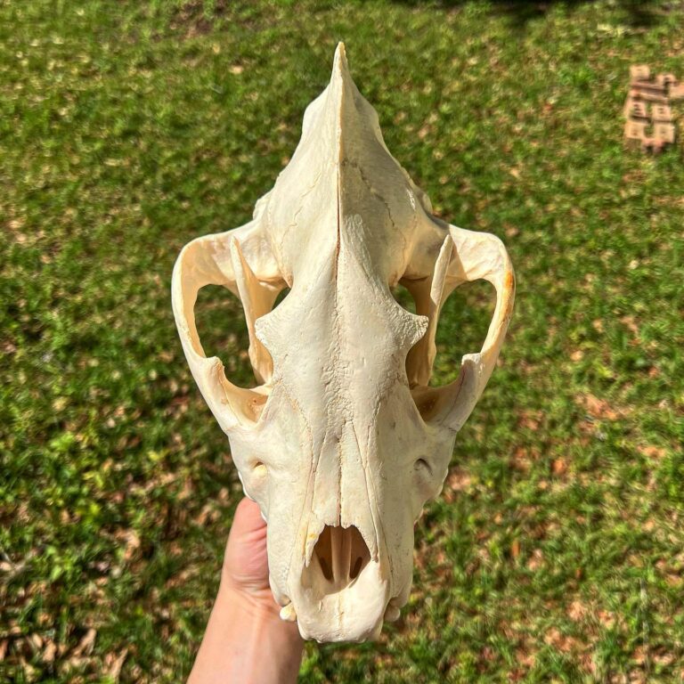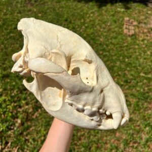 – Impressive Size: This skull measures 10.94 inches in length, 6.94 inches in width, and 5.5 inches in height, showcasing the robust and powerful structure of the spotted hyena.