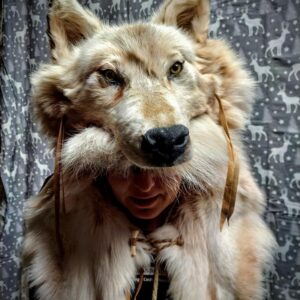 White Arctic Wolf Shaman Headdress – Majestic & Powerful